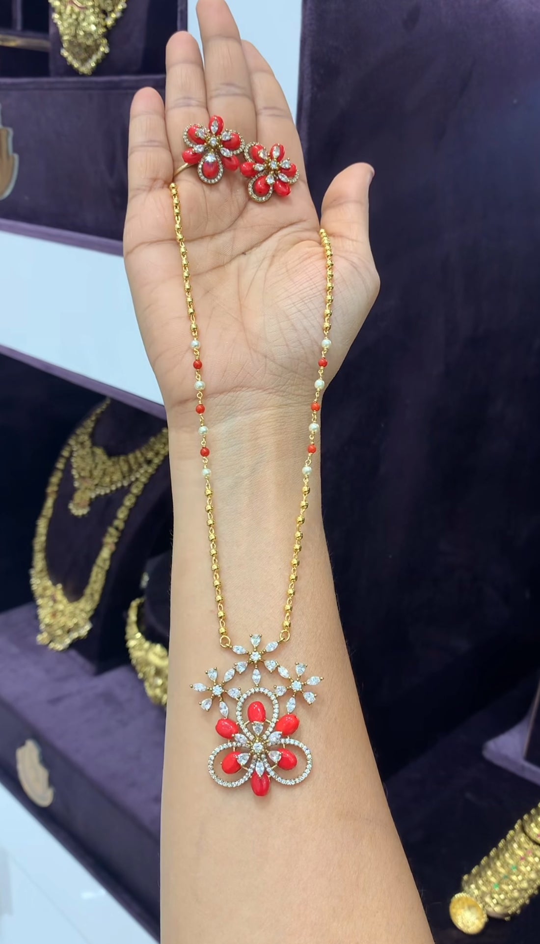 Beautiful pendant set with 18inchs customised chandraharam chain