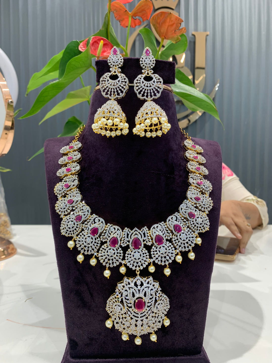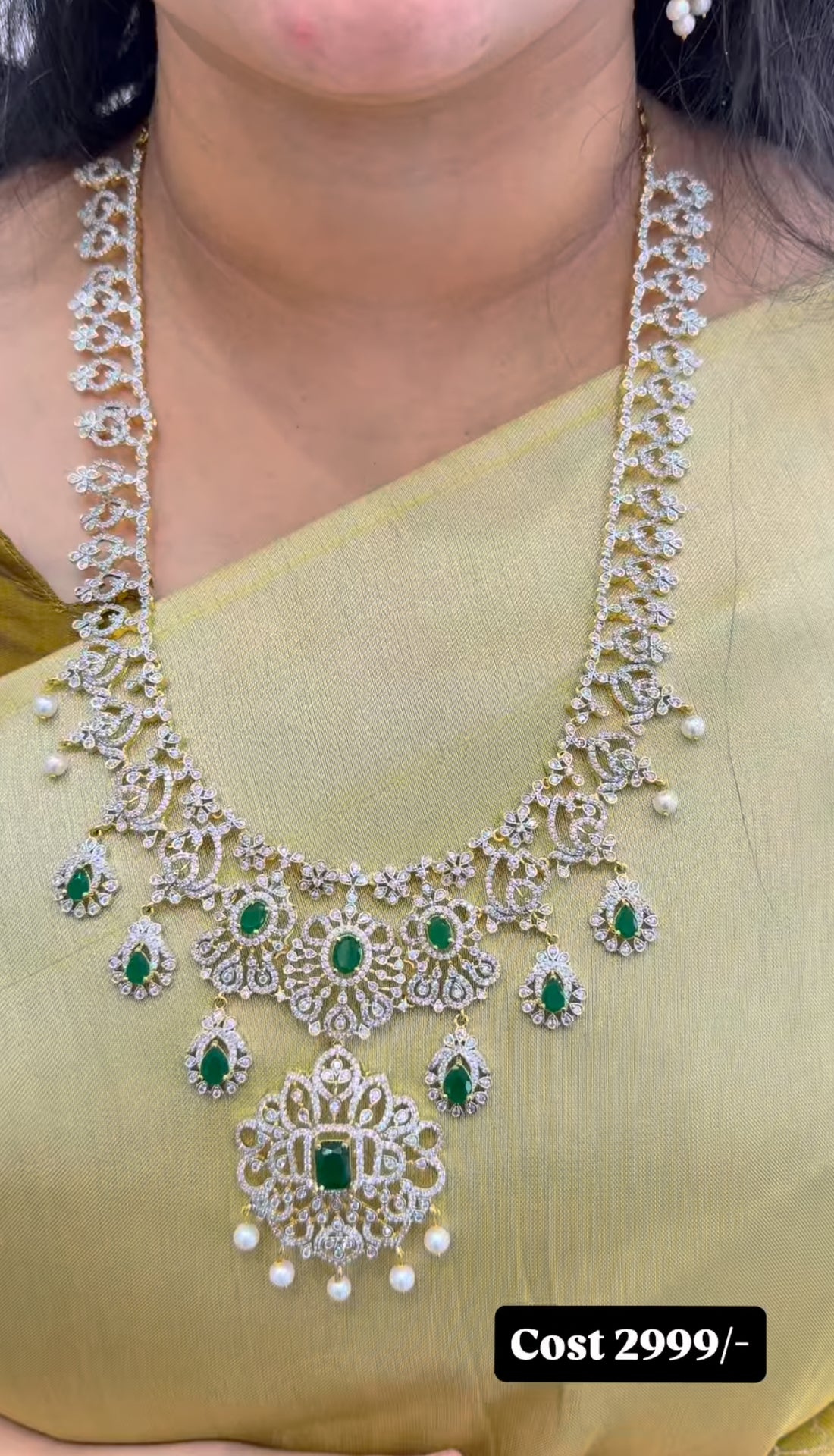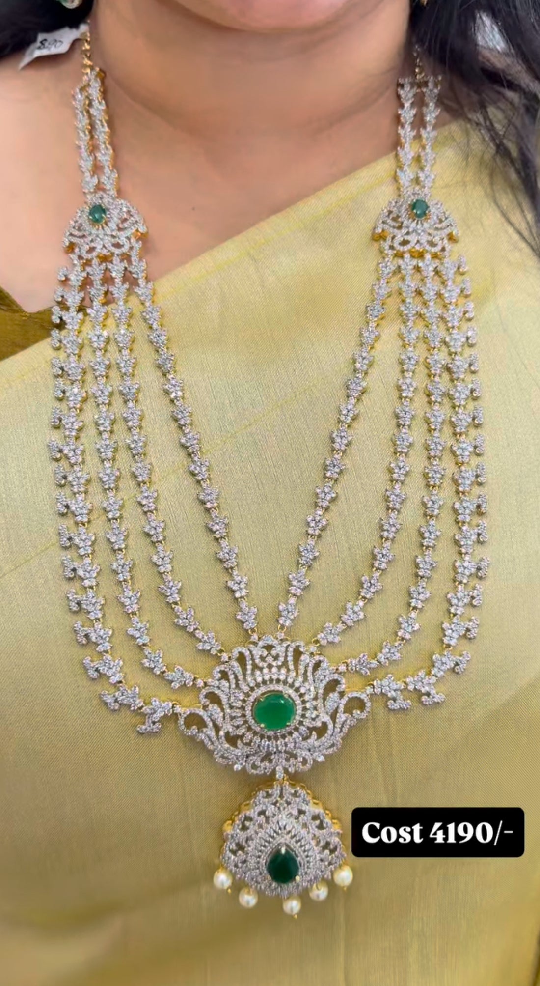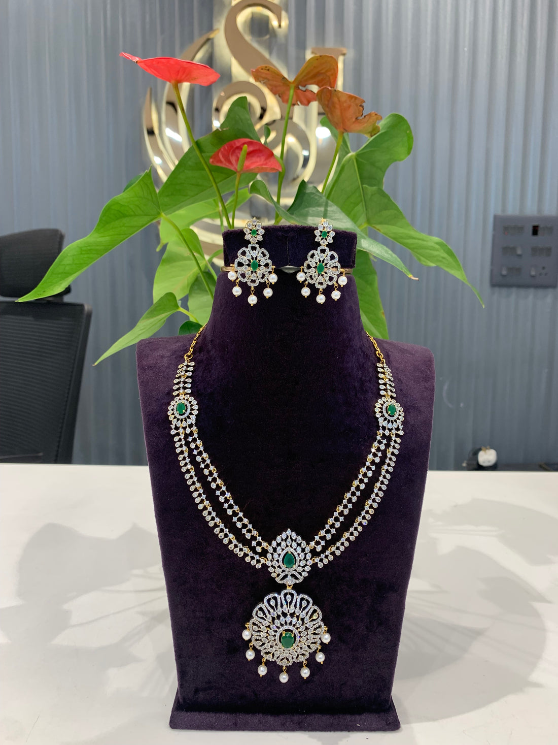 Beautiful unique pattern GJ polish long haram with green stone