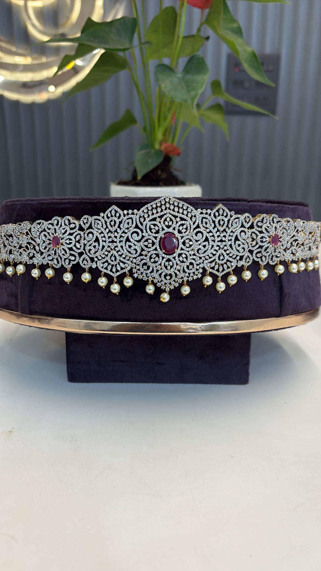 Beautiful vadanam with uncut stone locket