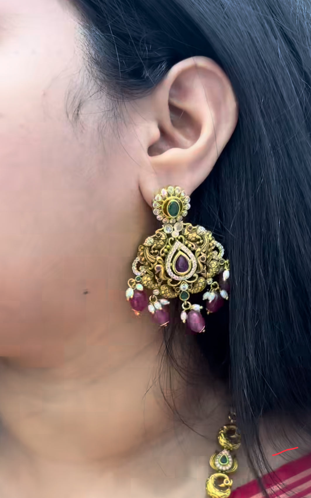 Beautiful Nakshi haram with red beads