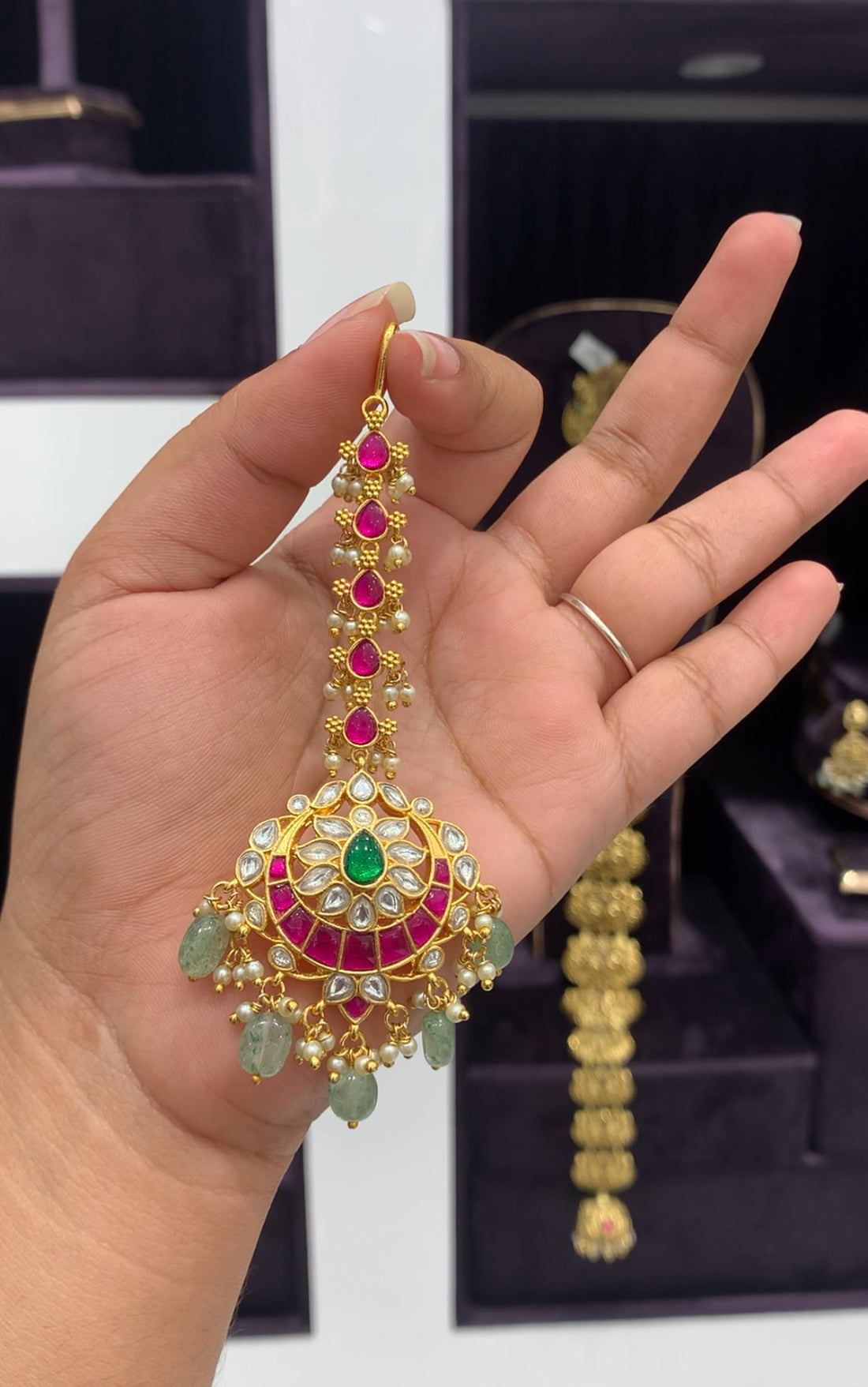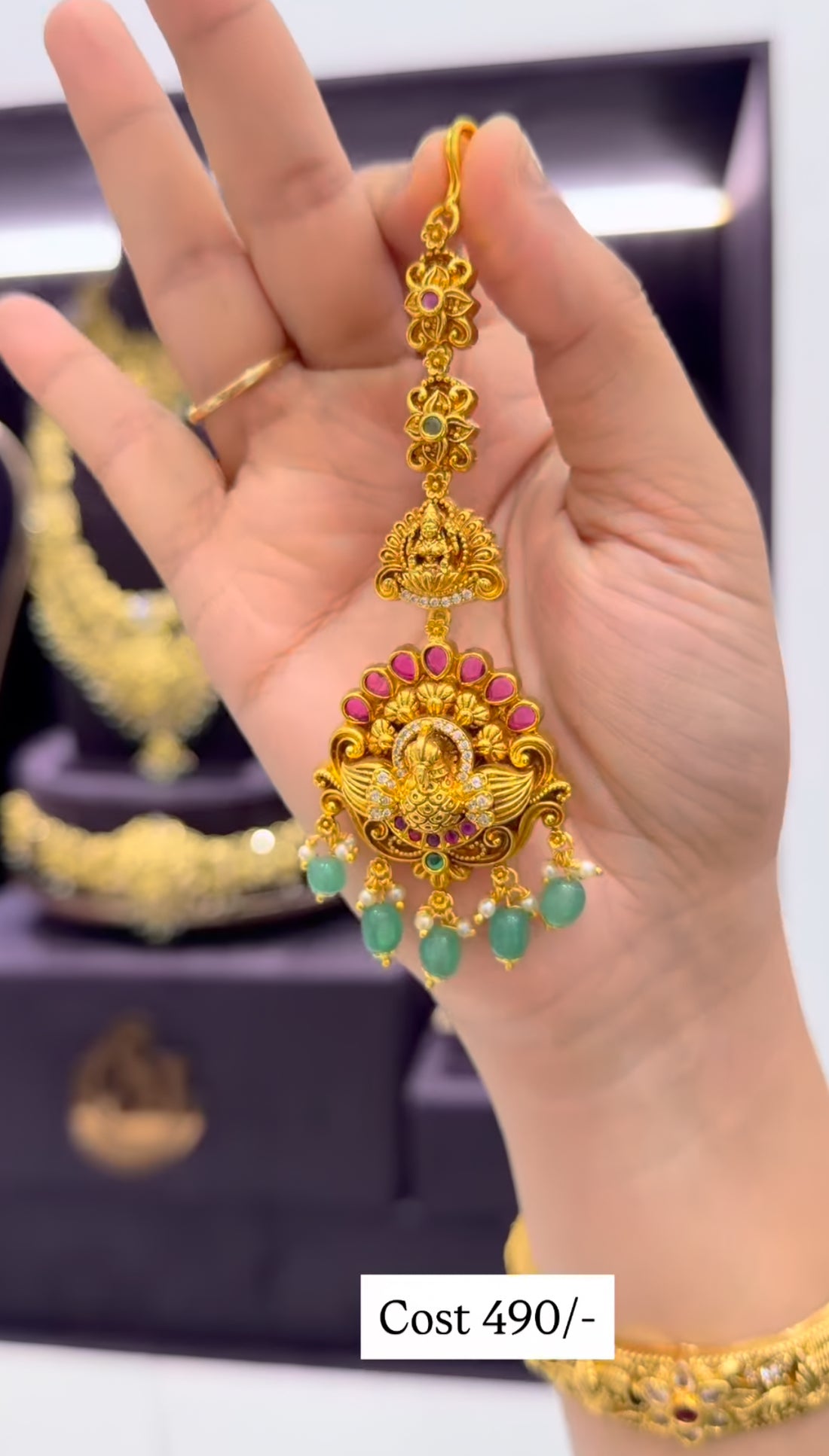 Beautiful Nakshi tikka with gold beads