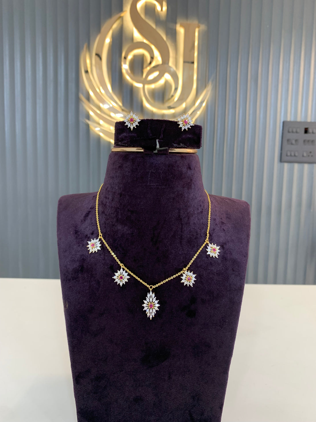 Beautiful diamond replica GJ drops chain set with earrings (18 inch’s )