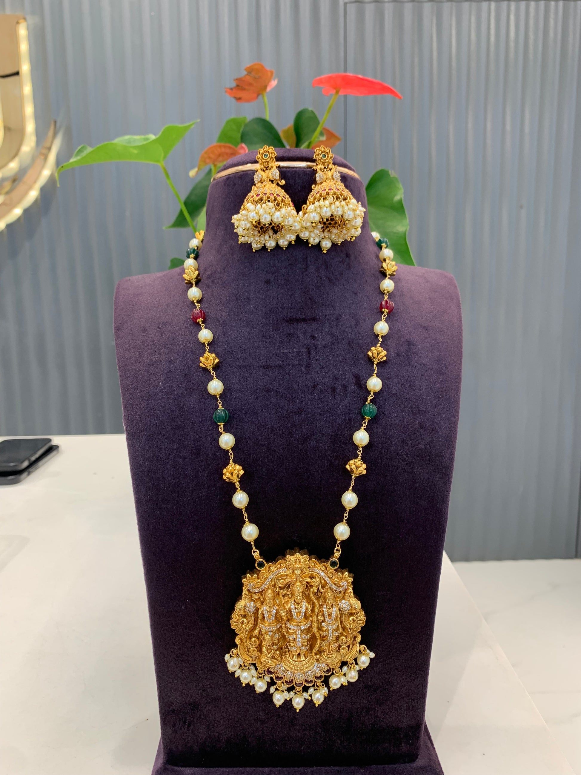 Beautiful Beads set with nakshi Ramparivar 3D locket set with Handmade Danda
